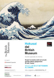L’evento è stato con co-prodotto con NHK (Japan Broadcasting Corporation) con riprese in 8K e sarà distribuito nei cinema mondiali da Nexo Digital; racconterà l’arte di Hokusai attraverso incredibili dettagli rivelatori e svelerà aneddoti e curiosità sull’eccentrico pittore. L’arte sublime di Hokusai sarà approfondita anche attraverso l’abilità degli artigiani giapponesi che riproducono le xilografie ed i suoi dipinti su seta, mentre David Hockney renderà omaggio al lungo e intenso impegno di Hokusai, condividendo appieno la convinzione che i grandi artisti migliorano solo con l’età.