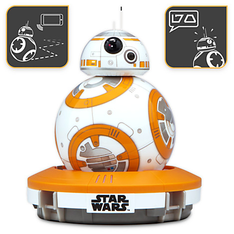 Sempre in tema robotico, si segnala l’esistenza di un droide ispirato al nuovo robottino del Risveglio della Forza, BB-8, che è l’esatta replica semovente del droide del film. Il droide interattivo è venduto dal Disney Store in due versioni: una da 39,90 euro e un’altra, molto più avanzata e telecomandata da 169,90 capace di esplorare il mondo attorno a sé e di trasmettere registrazioni olografiche.