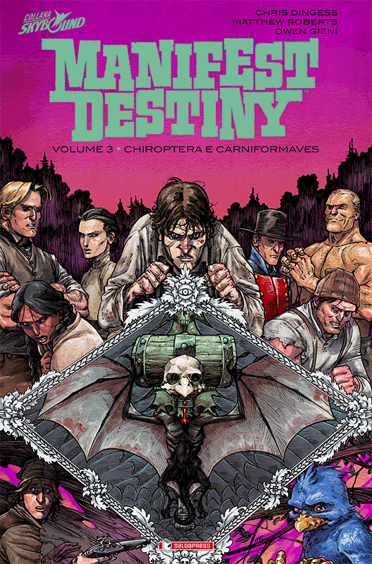 Giunge in Italia il terzo volume edito da saldaPress che raccoglie la serie Manifest Destiny, scritta da Chris Dingess e disegnata da Matthew Roberts, il cui esordio negli USA risale al 2013. Manifest Destiny vol.3 – Chiroptera e Carniformaves mantiene lo stesso elevato standard qualitativo cui eravamo stati abituati nei due precedenti volumi, confermando questa serie tra le opere migliori pubblicate da Skybound, etichetta creata nel 2010 da Robert Kirkman all’interno di Image Comics.