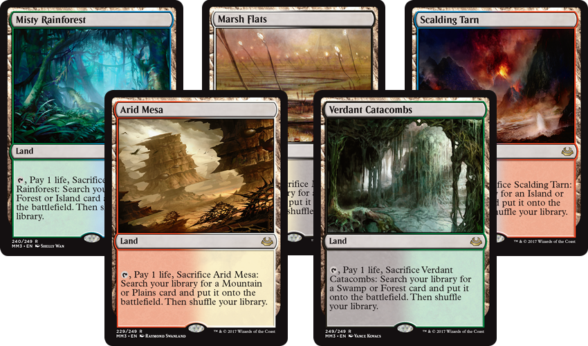 Poi, questo lunedì, è iniziata la stagione di spoiler e tutti i giocatori si sono dovuti immediatamente ricredere. La prima notizia che ha smosso l’opinione collettiva è stata la ristampa delle fetchland di Zendikar, mantenendo la normale rarità. Stiamo parlando di carte con prezzo minimo di 20€ e che superavano agilmente i 50€ nelle versioni più giocate, la cui ristampa era richiesta a gran voce, proprio per renderle più economiche.