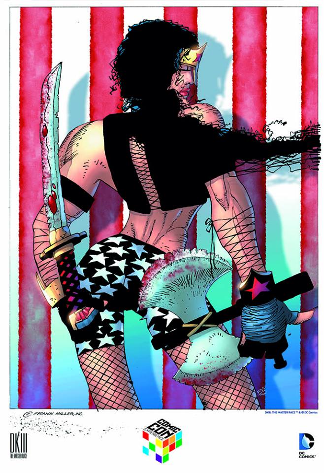 Ma l’attività dello scrittore/disegnatore non si ferma qui, ed ecco disponibile il poster della convention brasiliana Comi Con Experience, che si terrà a São Paulo il prossimo 3 dicembre. Protagonista di quest’immagine è Wonder Woman, ed è interessante notare come vengano enfatizzate i simboli della bandiera statunitense (le strisce verticali bianche e rosse e le stelle sul costume blu dell’amazzone), in un periodo così delicato come quello che stiamo vivendo.